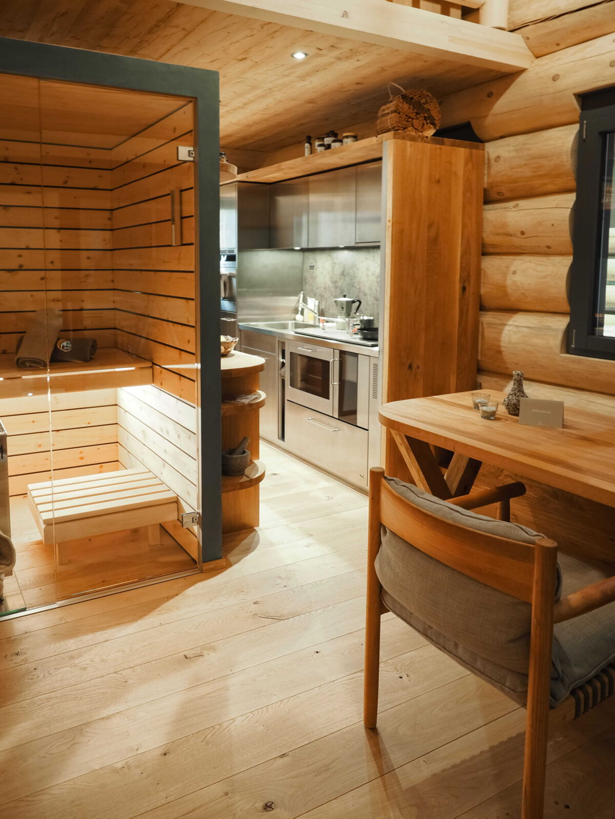 Stilvoll ausgestattet mit Schweizer Produkten und Handwerkskunst, unter anderem mit Sauna, Hot Pot, Regendusche und Schweizer Naturkosmetik